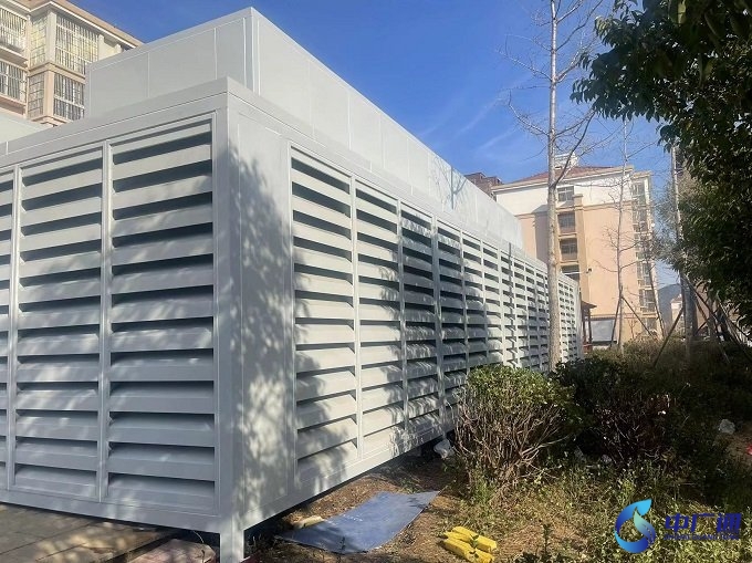 2、安裝環(huán)境允許條件下在冷卻塔設(shè)備外側(cè),設(shè)置消聲百葉與隔聲板的組合式屏障,阻隔設(shè)備整體噪聲的空氣介質(zhì)傳聲途徑;