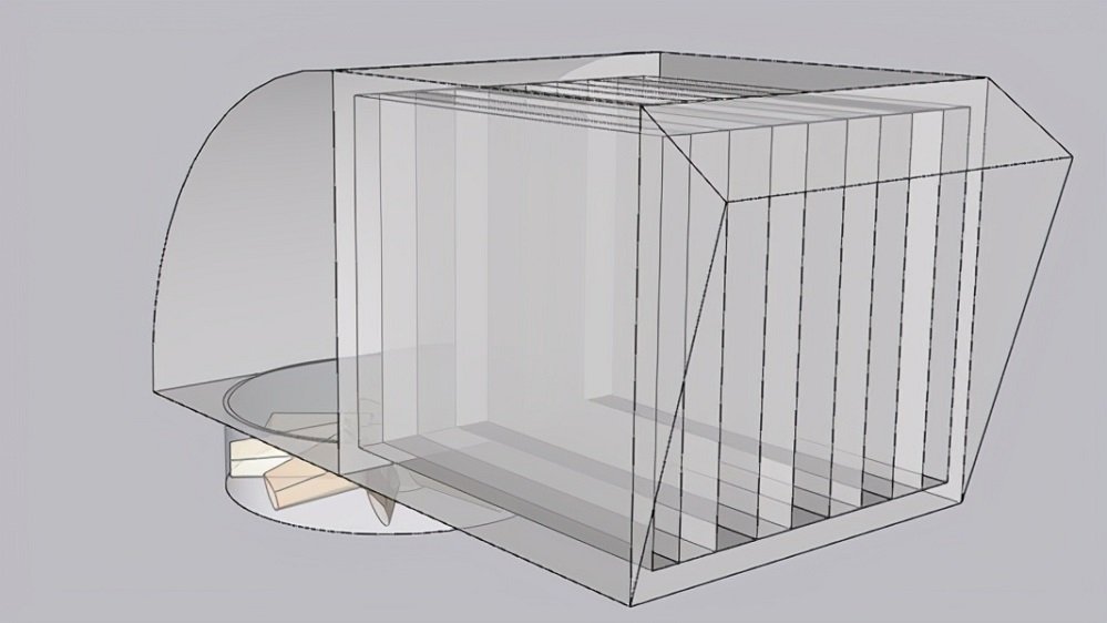 設(shè)置4個(gè)排風(fēng)口,在排風(fēng)口處增加強(qiáng)排風(fēng)措施,保證隔聲罩的換熱次數(shù),選用4臺(tái)12000 m3/h的風(fēng)機(jī)。排風(fēng)消聲器由0.5m排風(fēng)導(dǎo)流段+1.5m消聲段組成,截面為0.96平方米,設(shè)計(jì)排風(fēng)風(fēng)速7m/s。消聲段采用PY-10型片式消聲器,設(shè)計(jì)消聲量20dB。消聲器采用PY-10型片式消聲器,外殼由鍍鋅板+吸音材料(防火憎水布包裹)+吸音孔板(鍍鋅板才材質(zhì))組成,插片由吸音孔板(鍍鋅板才材質(zhì))+吸音材料(防火憎水布包裹)+吸音孔板(鍍鋅板才材質(zhì))組成防雨式設(shè)計(jì),所有外表面烤漆處理。